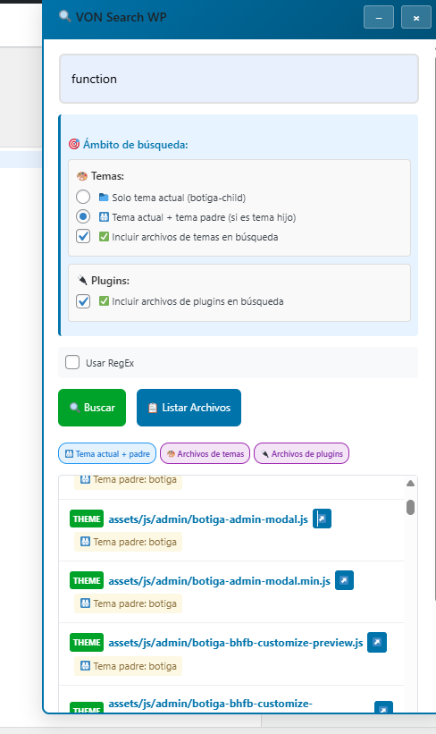 🆙 Actualizada la extensión de VON Search WP, ahora permite buscar en temas hijos y temas padre.