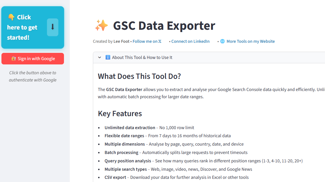 Leo en el timeline de Alex Romero sobre la herramienta GSC Data Exporter, una tool que te permite exportar en .csv tooooooodo el contenido de Google Search Console sin limitaciones.