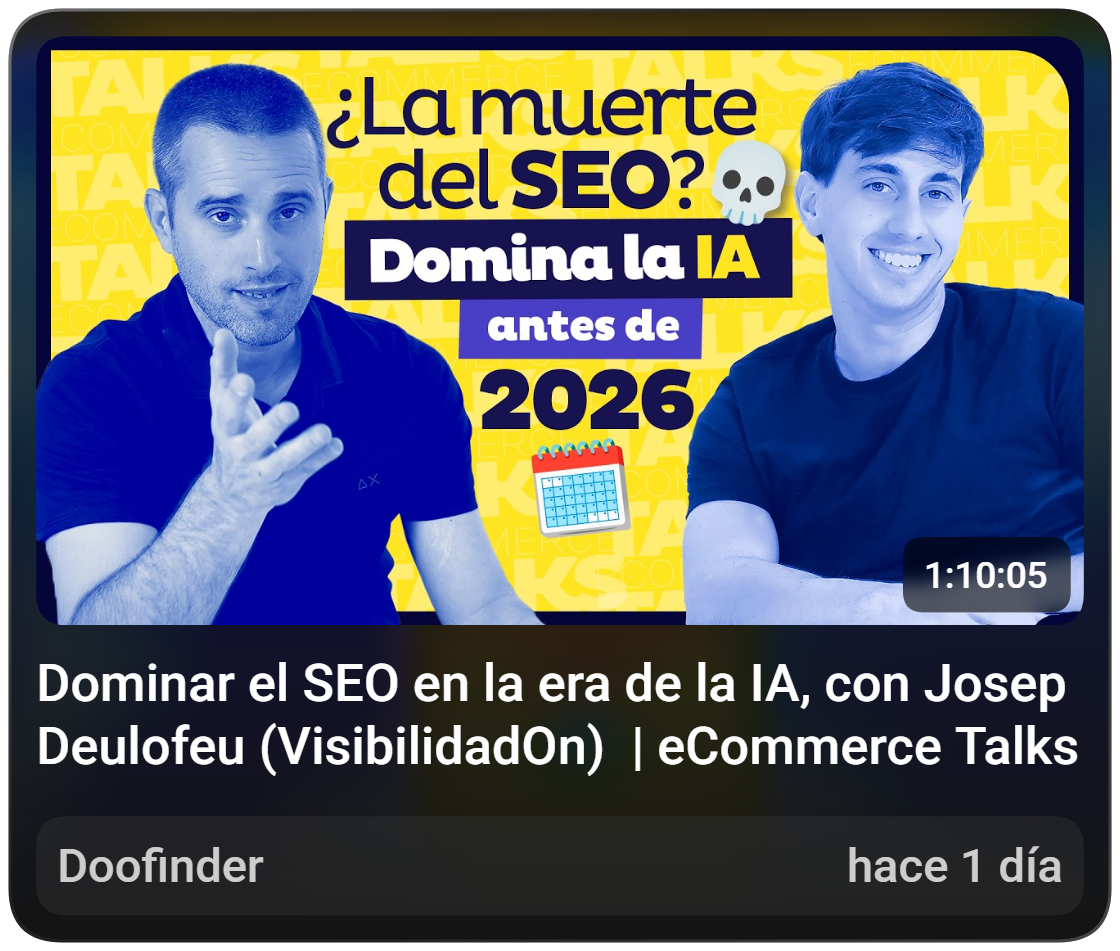 [🎙️ Dominar el SEO en la era de la IA, con Josep Deulofeu] Una muy interesante entrevista en la que Llorenç Palomas (CMO de Doofinder) conversa con Josep sobre cómo dominar el SEO (o al menos sobrevivir) en la era de la IA, muy de acuerdo en lo que se comenta y sí, confirmo que Josep anota en el Calendar cuando se ducha, desayuno, gimnasio, etc, etc… xD