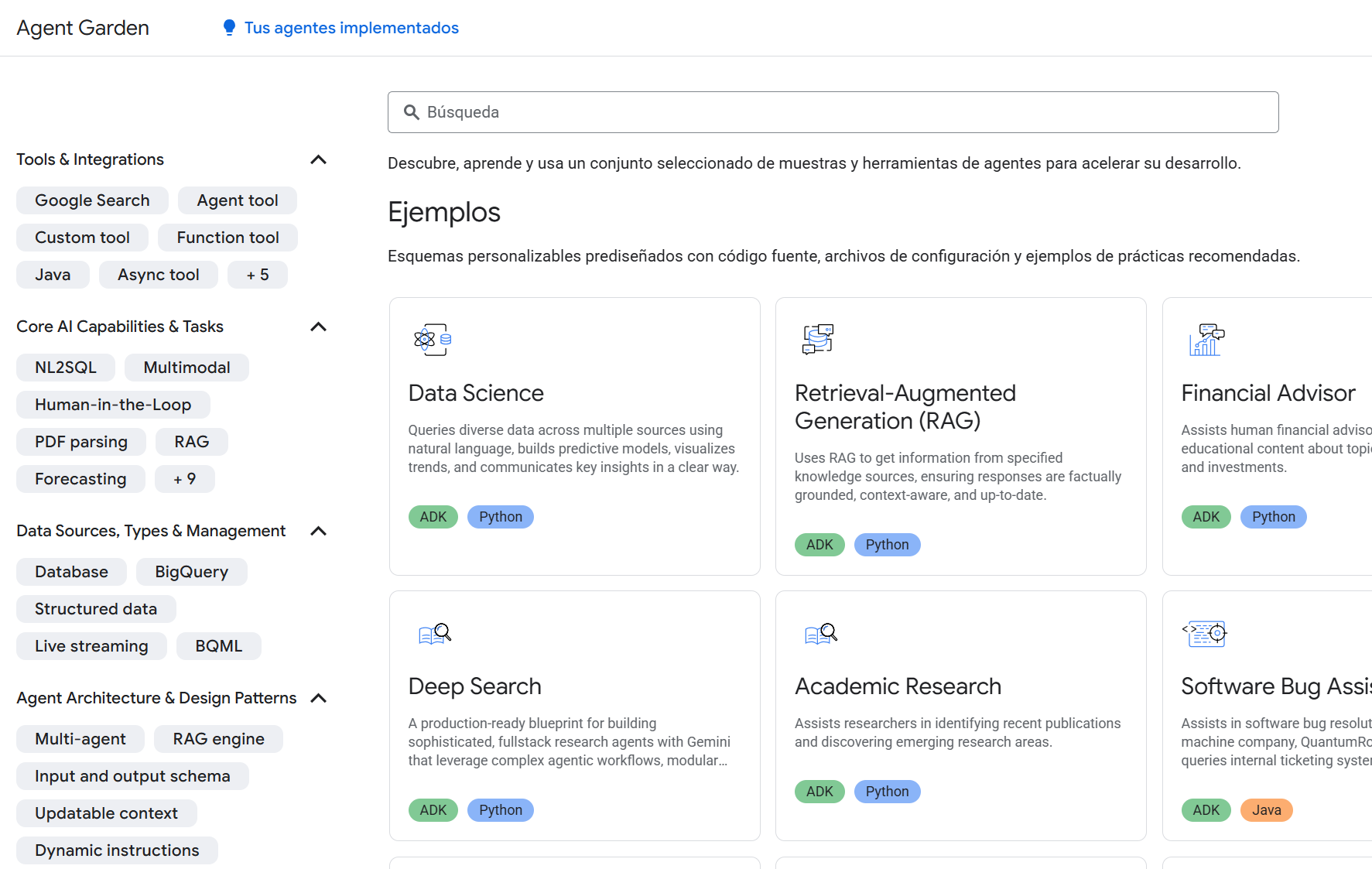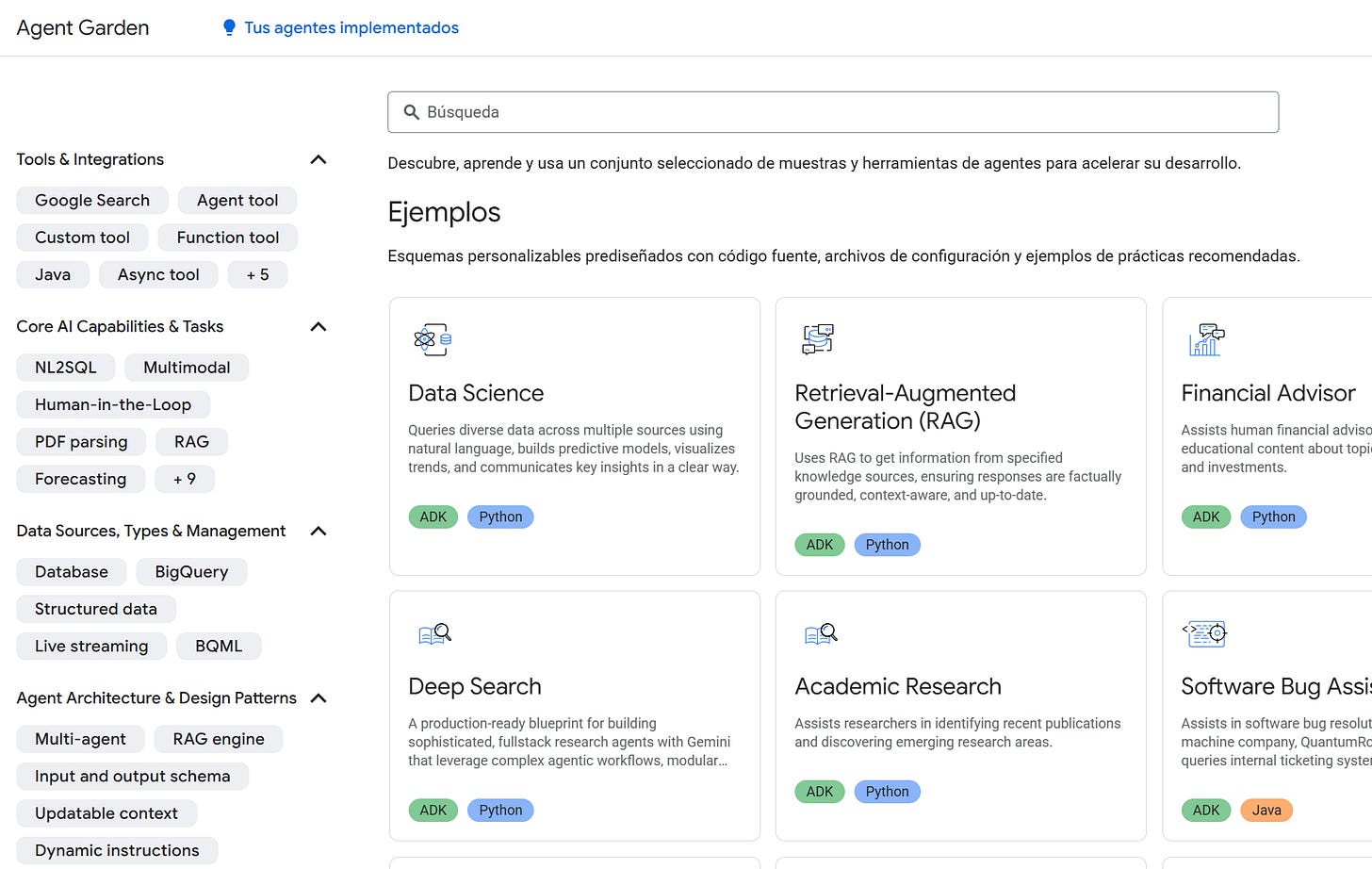 [🤖 Directorio de Agentes IA listos para usar] Google dispone de un directorio de agentes IA para multitud de tareas listos para usar, ya no tendrás que crear un agente para probar alguna idea o llevar a cabo alguna tarea, puedes entrar a Agent Garden, seleccionar el que te interesa y probarlo.
