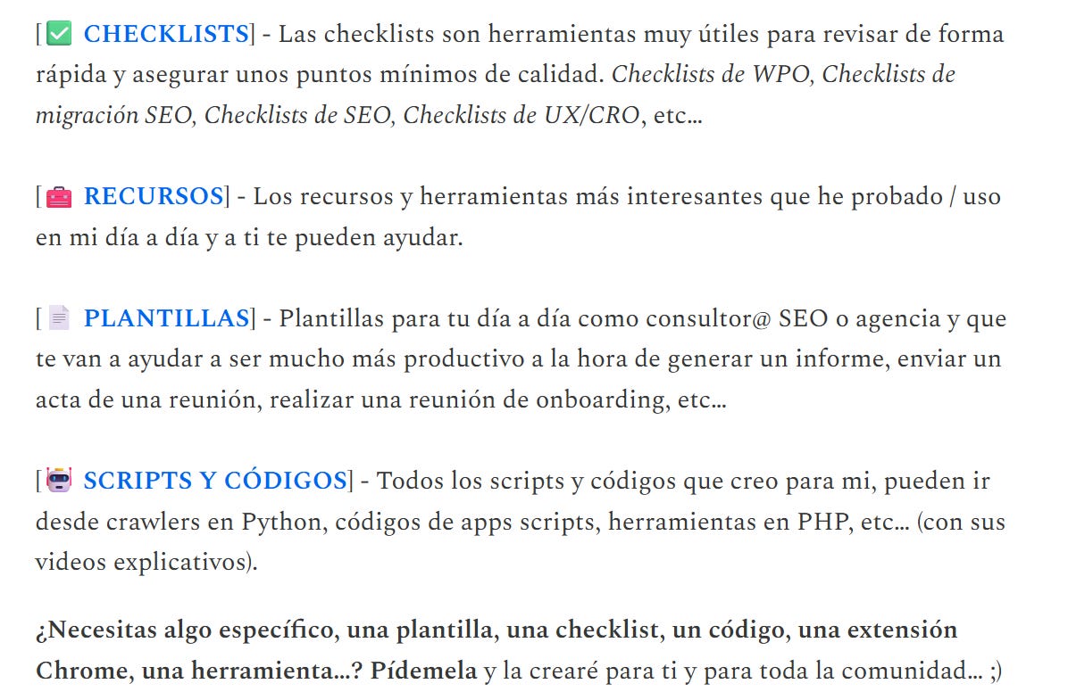 He abierto una sección en la newsletter que será Comunidad Privadad, donde iré añadiendo todos aquellos recursos, plantillas, scripts, checklists, etc… que vaya preparando en mi día a día.
