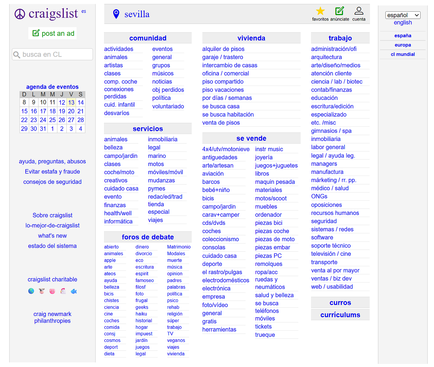 Quizás no te suene Craigslist, pero fue un sitio de referencia de anuncios clasificados hace ya algunos años, aunque a España no llegó del todo, en EEUU era líder indiscutible, con un “pequeño” handicap era (y es) una web feísima, que parecía la primera web que hace cualquier que empieza a desarrollar.